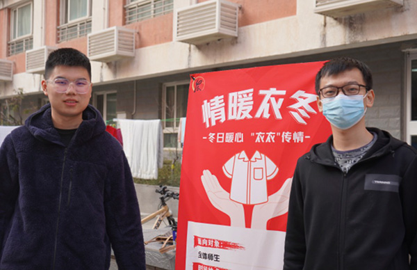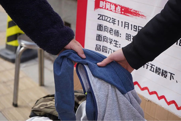 本次活动在知行楼群、品园楼群、东风楼群分别设置了3个捐衣点,每个捐衣点均由两名志愿者负责收集衣物。