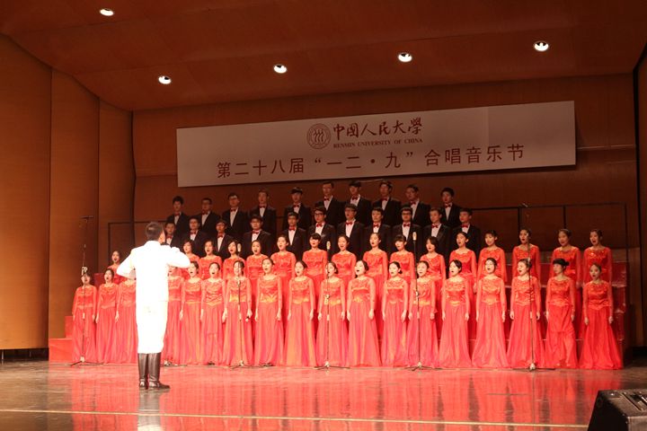 下午2点半,轮到我们登台表演。伴随着如论讲堂“农发、农发”的欢呼声,身着盛装的选手们陆续上台。在陈正昊师兄的指挥下,选手们放开歌喉,激情咏唱,为大家带来一首精彩绝伦的《迎风飘扬的旗》,赢得了台下热烈的掌声。