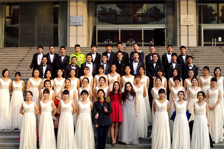 比赛结束后,大家余兴未尽,齐聚在如论讲堂的台阶上再次高歌一曲。这歌声是辛勤付出两个月之后的释放,饱含完成比赛后的成就感和对于“一二·九”结束的不舍。最后大家一起合影留念,绽放了快乐的笑容在这一刻都被定格,“一二·九”的记忆也永远存在了每个人心中。
