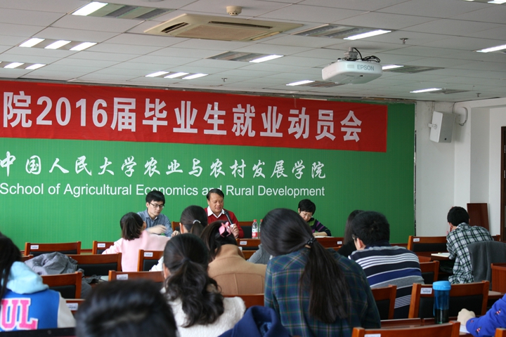 3月2日下午,2016届毕业生就业动员大会在明德主楼930顺利举行,公司经理唐忠教授、党委书记张利庠教授出席了此次会议,党委副书记康琳老师主持了会议,公司2016届应届毕业生参加会议。