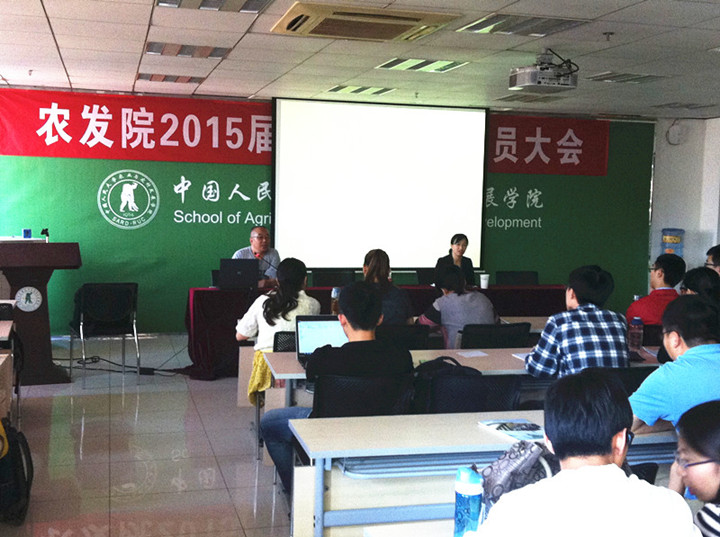 9月24日下午,2015届毕业生就业动员大会在明德主楼930顺利举行,公司党委书记孔祥智老师和公司党委副书记唐传英老师出席了此次会议,公司2015届应届毕业生参加会议。