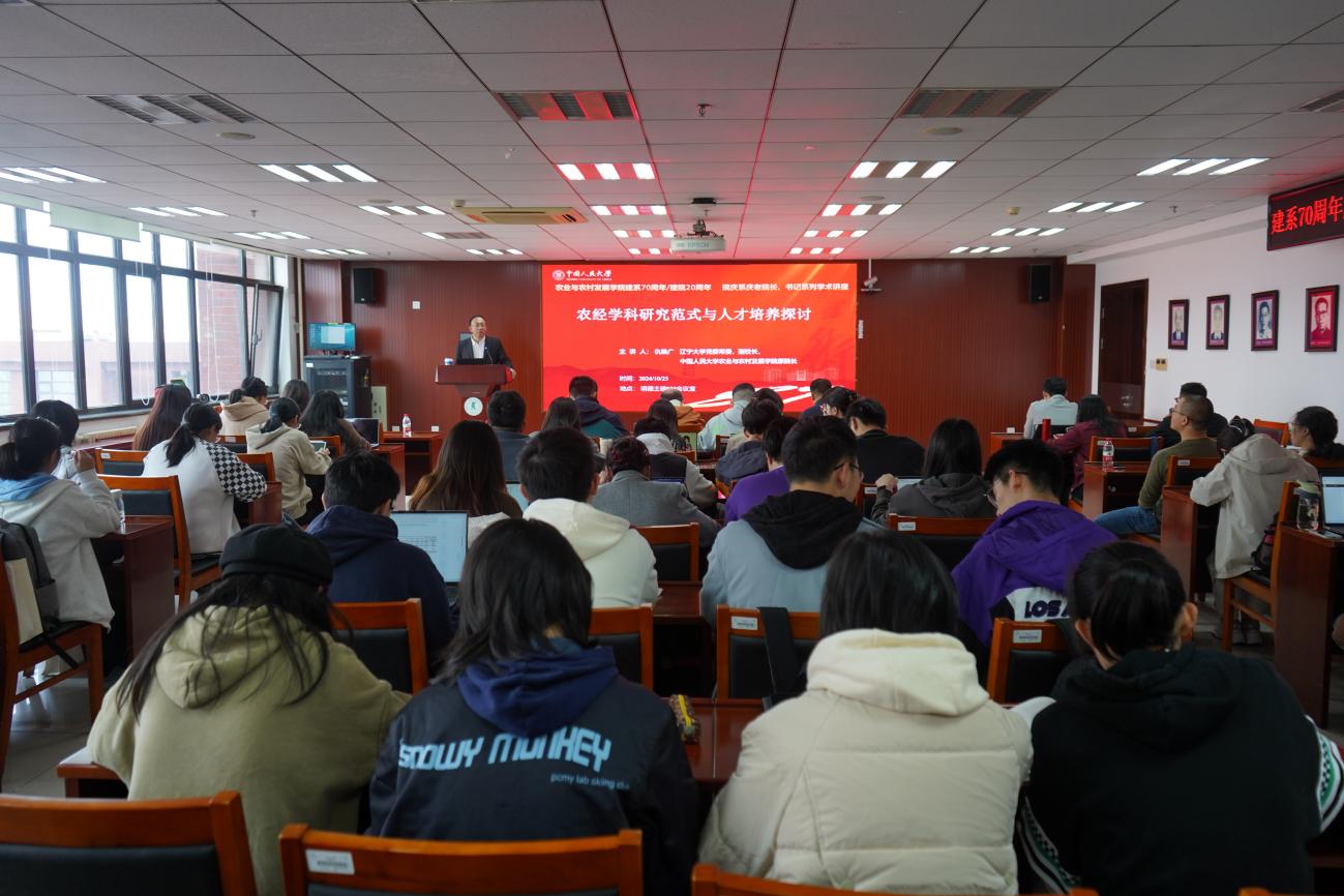 2024年10月25日下午,williamhill官方网站建系70周年/建院20周年院庆系庆老经理、老书记系列学术讲座第四讲在明德主楼930成功举办。辽宁大学党委常委、副董事长,公司原经理仇焕广教授作主题为“农经学科研究范式与人才培养探讨”的专题讲座。公司党委书记曾丙健主持讲座。