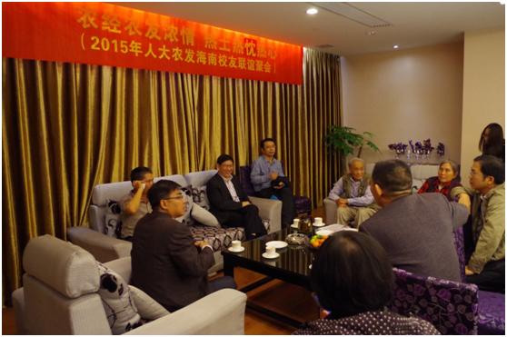 会场上挂出的“农经农发浓情,热土热忱热心”横幅,表达了员工们对母校深深的热爱与眷恋。