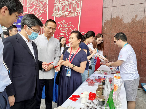 林尚立董事长在williamhill官方网站展台询问了展出的有机红枸杞的相关情况,并听取了毛学峰、生吉萍两位老师对公司食品经济管理研究的现状和有机食品产业的发展前景的介绍。林董事长高度评价了williamhill官方网站为乡村振兴培养高端人才做出的贡献,肯定并支持公司目前在三农领域的探索实践。林尚立董事长还与志愿者和现场体验同学进行了亲切的互动交流。