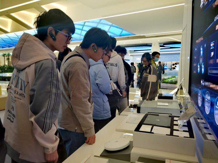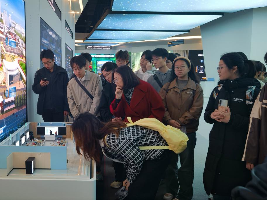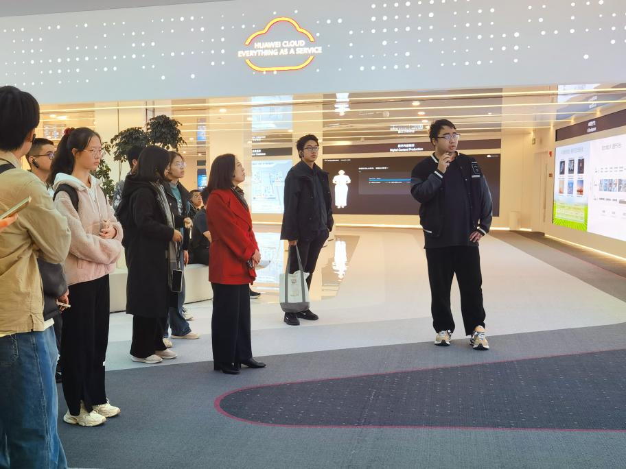 华为北京会展中心是华为在京设立的重要展示平台,共有四大展区和多个展岛,涵盖了华为绝大部分产品线、事业群和业务单元的领先产品和解决方案。通过工作人员的讲解,同学们了解了华为依托数字技术开展的基础设施建设,以及数字技术赋能政府管理、城市运行、公司公司产品等的解决方案;了解了华为在人工智能、虚拟现实、云计算、物联网、5G等领域的前沿技术成果。同学们亦通过体验华为智能云会议室以及一系列性能卓越的电子产品,深刻感受到了科技带来的高效与便捷。