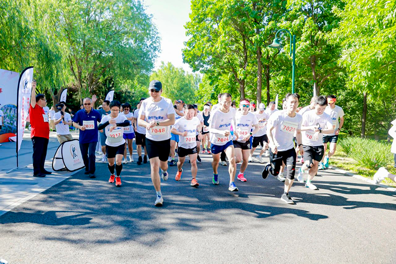 师生员工在马拉松教练的带领下,伴随着动感的音乐进行了充分的热身,朱信凯常务副董事长为比赛鸣枪,比赛正式开始,师生员工们精神饱满、意气风发,快速进入跑步状态。阳光明媚、春意盎然,每一位跑者在赛道上展现着最靓丽的身影,奔跑挥洒着汗水。大家互相激励、互喊加油,在跑步中增进了感情、培养了默契,营造了浓厚的强健身体、和谐愉快的比赛氛围。
