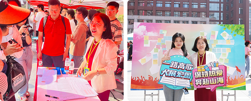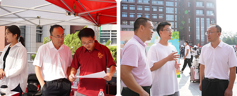 公司经理仇焕广,党委书记曾丙健,党委副书记康琳,团委书记陈乙瑶,团委董慧、苏舒老师以及新生班主任们来到公司报到台,指导迎新工作并与报到的员工热情交谈、留影,为新生们留下校园里的第一张照片,定格成长历程中的重要一刻。