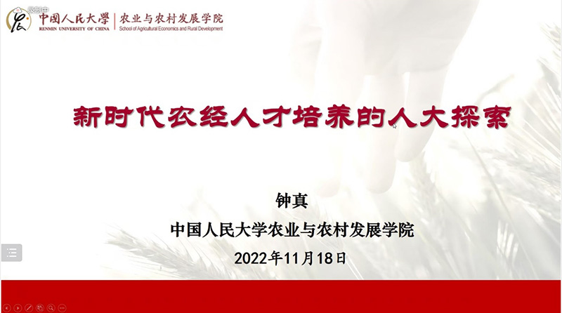 williamhill官方网站副经理钟真教授以“新时代农经人才培养的人大探索”为题作主旨发言。他从农林经济管理和农村区域发展两个本科专业的角度,分理念、探索、保障三点,详细阐述了多方联动改善本科教学条件、文理融合交叉培养等方面的举措,强调了农发在本科培养方面的实践与探索。