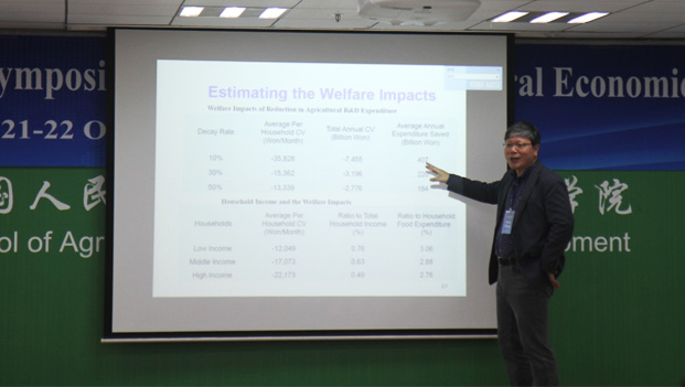日本九州大学的Shoichi ITO教授首先作了题为《Political Manipulation of Rice Imports to Japan: Current Issues and Implications for TPP》的发言,阐述了当前日本存在的大米过剩问题,认为日本政府应通过国际贸易手段解决国内大米过剩的现状。随后,韩国首尔大学的Jung, Jin Hwa教授作了题为《Farmers'age, Technology Adoption and Income: A Case of the Elderly-friendly Technology》的发言,探讨了农民技术接纳能力与年龄之间存在的关联关系,对当前韩国农业的发展提出了方向性的建议。郑适副经理作了题为《Use of Multiple Equations in Chinese Ag Econ Research》的发言,讨论了三阶段模型在中国农经研究中的应用,并结合技术采纳、玉米结构性改革和合作社等问题进行了举例说明。日本九州大学的Mitsuyasu YABE教授作了题为《The Market Value of the GIAHS Certification: Traditional Tea-grass Integrated System in Japan and Biodiversity Conservation》的发言,研究了基于GIAHS模型的日本茶树一体化体系和多样性保护问题,为日本绿色经济的发展提出相关建议。韩国首尔大学Roh, Jae Sun教授作了题为《Efficiency Analysis of Agricultural Cooperatives In South Korea: A Directional Distance Function with Endogenous Directional Vectors》的发言,运用计量分析方法,以定量距离函数分析了韩国农业合作社生产效率的影响因素,提出推广服务的扩张不应影响到合作社运营的效率。公司刘晓鸥副教授和田晓晖老师等也作了精彩的发言。