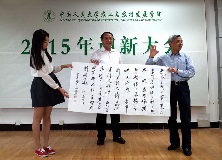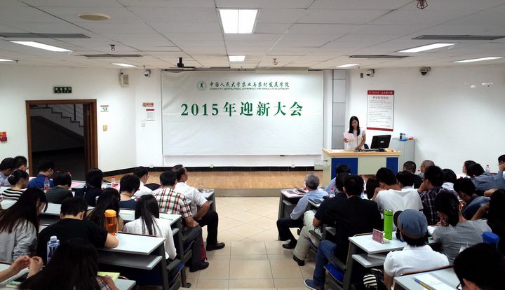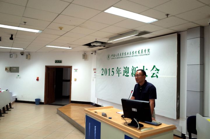 下午三点半,大会第一阶段结束。本科与研究生新生分别参加迎新大会的第二阶段部分。公司副经理郑风田教授以如何渡过充实而有意义的大学时光为主题,从人才培养、科学研究、调研实践等方面,为2015级本科生详细介绍了公司与之相关的工作安排。研究生新生部分的会议由公司副经理孔祥智教授主持,曾寅初教授就研究生如何开展科学研究工作进行了主题讲座,孔祥智教授则就研究生选导师、综合测评等内容进行了相关说明。