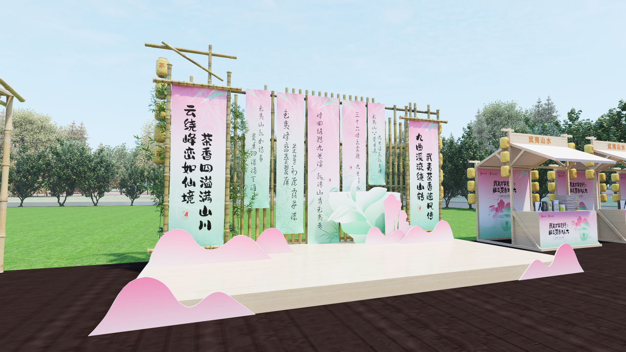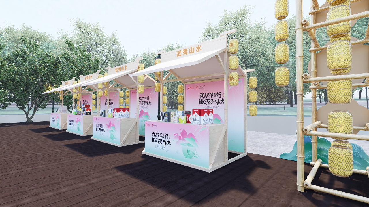 (3)文化交流展设置舞台打卡区,设置打卡互动活动,凡现场打卡5个及以上展位并拍照发布朋友圈,即可至领取“武夷山水·茶空间”茶会区试泡茶一份。活动过程中邀请公司相关员工社团,如古琴社、汉服社等参与现场演出,通过和员工社团的互动,使得整个活动更具清雅风致、也契合年轻人的喜好,仿佛有庭院小聚雅集的自适之感。