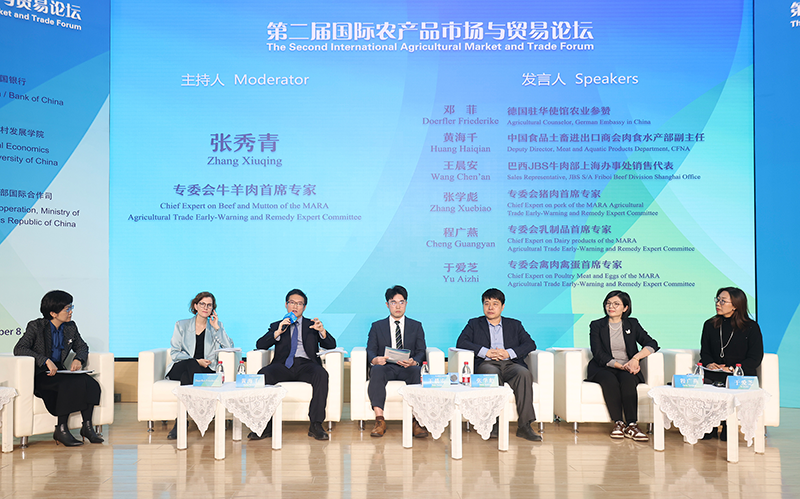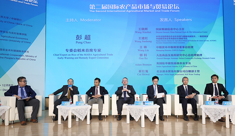 在粮棉油糖、畜牧产品两大专题讨论环节,国家粮油信息中心主任王晓晖、中华全国供销合作总社农资与棉麻局副局长、一级巡视员王建红以及农业农村部农业贸易预警救济专家委员会有关品种首席专家、中粮资本中粮期货、大连商品交易所研究中心、中国食品土畜进出口商会、美国驻华使馆、德国驻华使馆、巴西JBS公司等代表,围绕粮食、油脂油料、食糖、棉花、猪肉、牛羊肉、乳制品和禽肉禽蛋等重要产品,从市场供求的历史和现实规律、产业链上下游互动关系、金融和能源等宏观因素渗透、产储销政策变化等视角,深入交流分析了贸易和供求趋势。