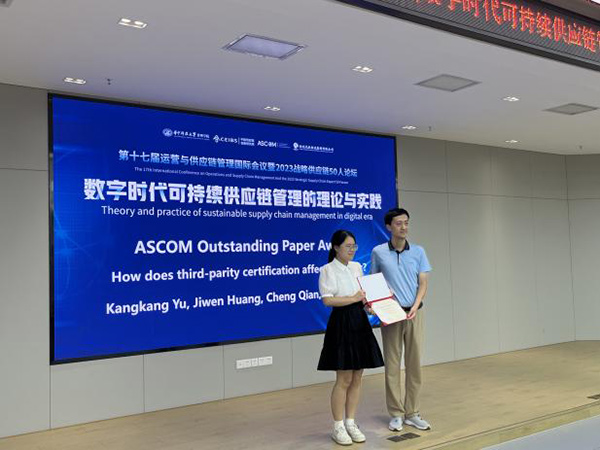 2023年7月15日至7月17日,williamhill官方网站硕士生向玉兰、侯绍博受到国际供应链与运营管理学会(ASCOM)邀请,前往武汉市华中科技大学参加第十七届运营与供应链管理国际会议暨第六届战略供应链领袖论坛(ICOSCM 2023),两位同学的指导教师均为于亢亢老师。