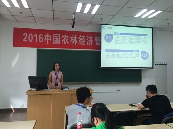 来自东北林业大学的朱丽娟做题为“新型职业农民参与培训的决策行为及影响因素分析——基于黑龙江省的调查数据”的报告