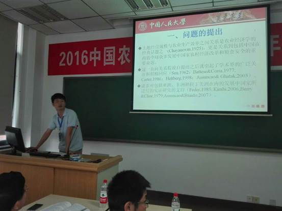 本会场关注城镇化发展过程中的诸多矛盾,其中刘畅同学关注子女外出务工对父母健康的影响,宁可博士研究了市场化过程中非农经营收入对农村收入差距的贡献额,冯波实证分析了教育质量与户籍歧视对城乡劳动力工资差异的影响。在张利庠老师的主持下,大家充分互动,使得论文报告者得到了一定的启发。