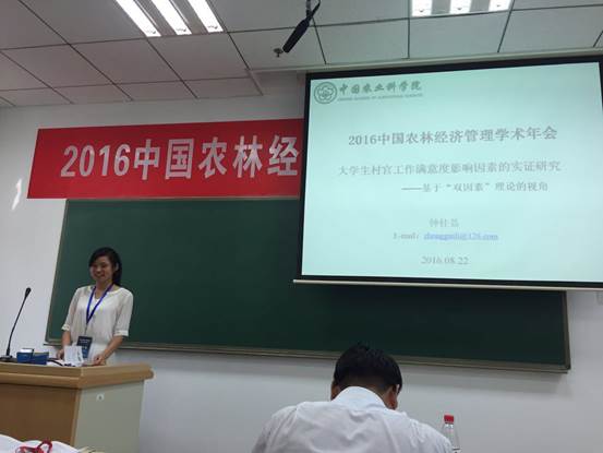 来自中国农业科公司农业经济与发展研究所的钟桂荔做题为“老员工村官工作满意度影响因素的实证研究”