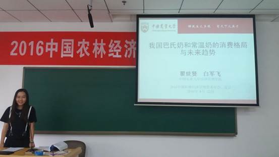 中国农业大学翟世贤对中国巴氏奶和常温奶的消费格局与未来趋势的做了论文汇报
